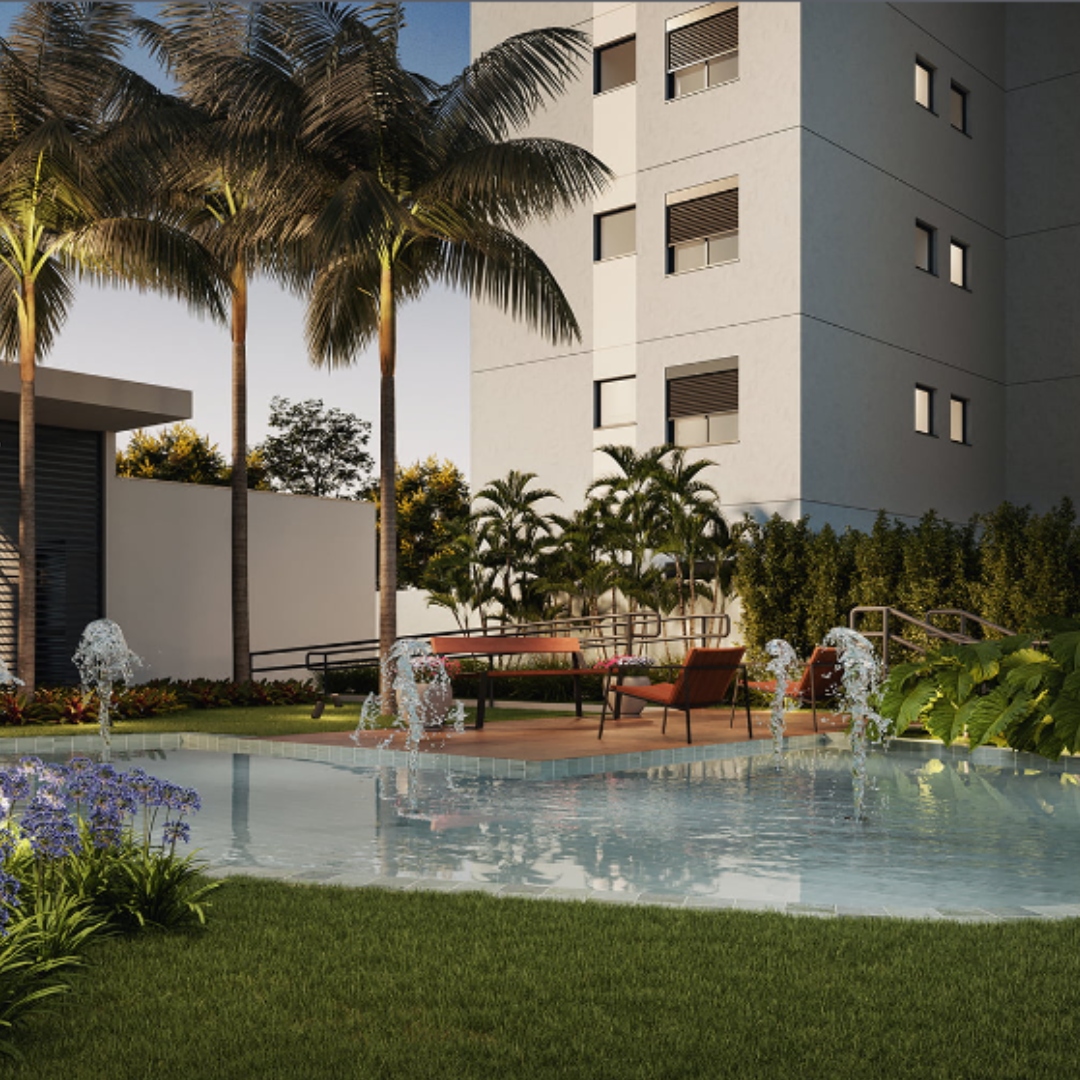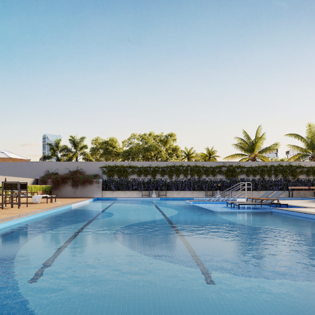 Esse belíssimo projeto possui área de lazer completa com piscinas (deck molhado, solário e bar da piscina), quiosque com churrasqueira, quadra recreativa, pet place e playground.